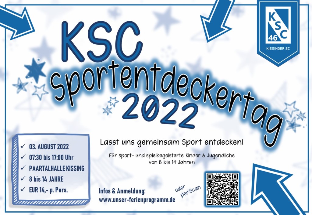 Der KSC-Basketball beteiligt sich am diesjährigen Sportentdeckertag des Kissinger SC. Dieser geht als Nachfolger der KSC-Ferienwoche hervor, die im Jahr 2021 bereits einen großen Erfolg dargestellt hat. Am Sportentdeckertag 2022 können Kinder und Jugendliche Einblicke in verschiedene Sportarten des KSC gewinnen und diese mit Spaß und Freude ausprobieren. Informationen und Anmeldung: https://www.unser-ferienprogramm.de/kissing/veranstaltung.php?id=142506&s=&a=0&k=